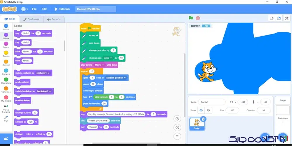 - استفاده از بلوکهای رویداد، کنترل، عملگرها و حس کردن.